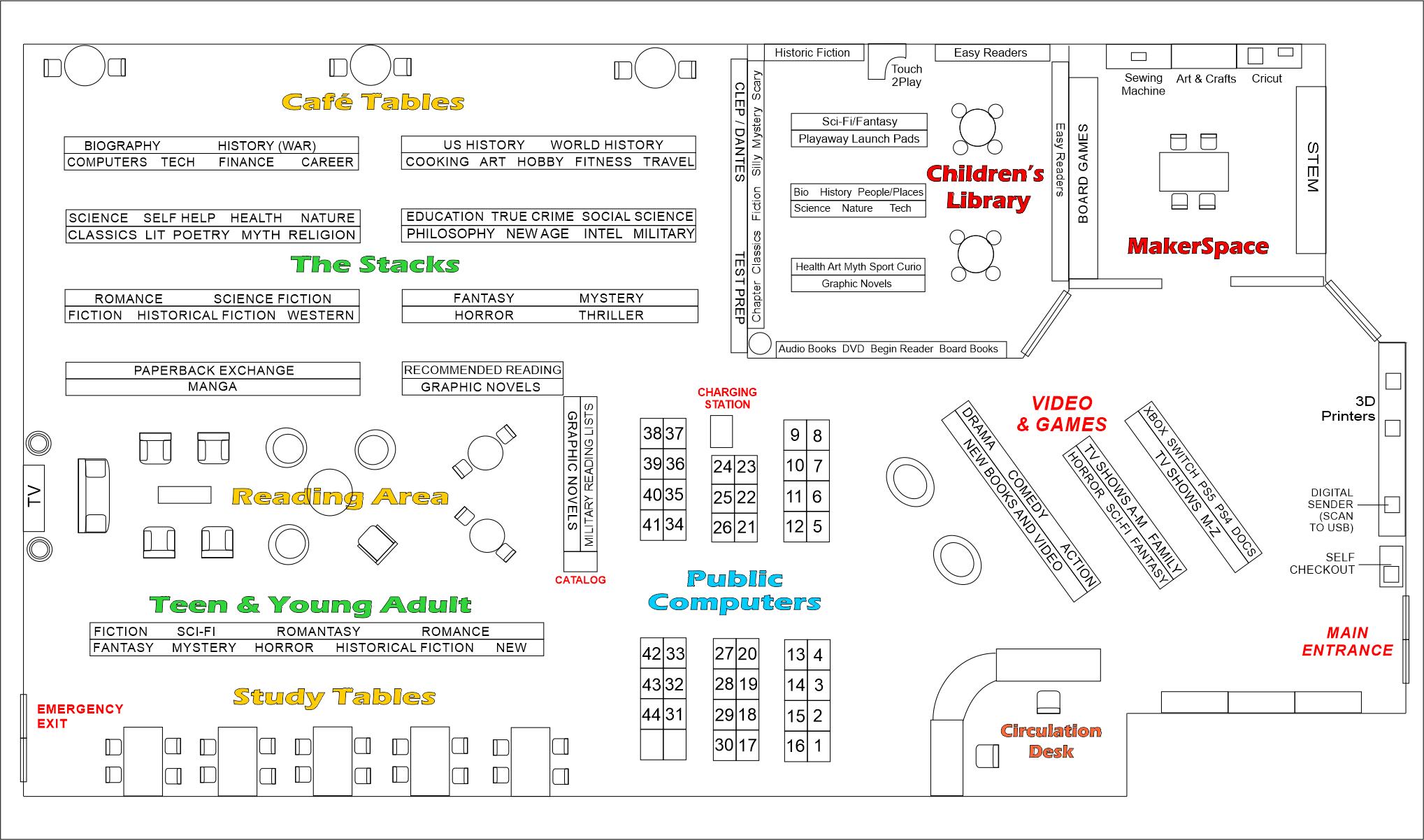 Click on the image to see a larger version of the Library's new flooplan.